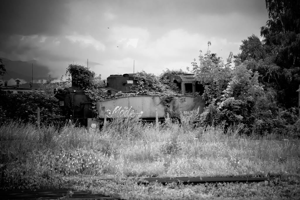 No, this old, abandoned locomotive is not in the wild but at the station in Bansko.